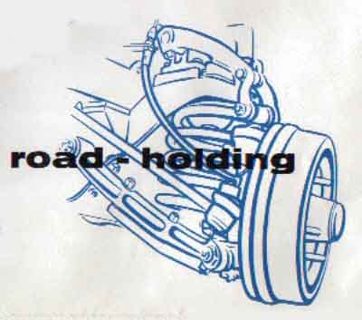 "Truly upholding the M.G. reputation for speed with stability, the Magnette (Mark III) grips the road with the tenacity that always distinguished the breed. The careful intergration of suspension geometry and steering layout has permitted firm sports-car road-holdling without a hint of vibration. Tough coil springs in conjunction with hydraulic level-arm shock absorbers provide a system of independant front suspension that has yet to be surpassed. Positive stopping power is supplied by large fade-free brakes."