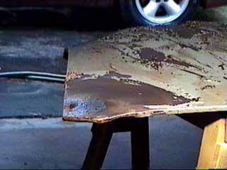 the dent is contoured and rusted, even with the stripper, the paint