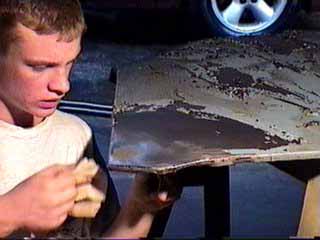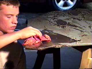 soda and water is applied and wiped off.