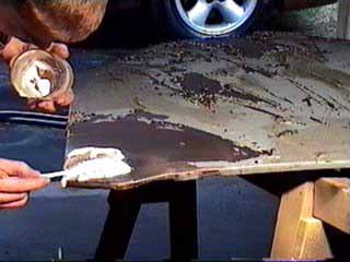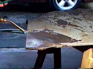 dented area is "painted" with a speciaal tinning butter.