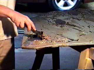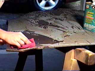 A final wiping with mineral spirits removes any baking soda.