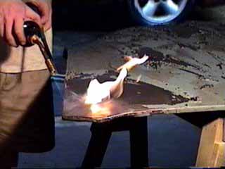 tinning butter is heated with a torch to a golden brown.