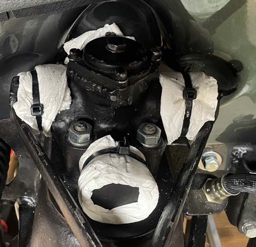 Wrap tissue paper/absorbent kitchen roll around the locations where the shafts protrude, the damper housing and around the threaded end caps and secure with cable tie.
