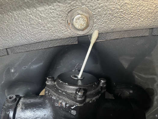 Check the hydraulic oil level in the damper housings using the cleaned off cotton bud stick.