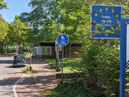 We left at roughly 09:30 hours for our trip to Arnhem, where we were due to stay on campsite on working farm at Doorwerth. For no other reason other than simply because I could, I decided I wanted to cross the border into Germany simply to add another country to the list of countries we had visited, so we planned a slight de-tour to our route and crossed the border and filled up with fuel and had cake stop at town called Vreden. We then drove back into the Netherlands and en route to Arnhem stopped as we past a car sales show gallery called Gallery Aaldering. There were 4 or 5 floors ram packed with some very exotic 6 figure priced vehicles, I only stayed for brief flash review as we had been on road for bit and were keen to get to our campsite, but if I had more time, one could easily have stayed for longer and enjoyed a cup of tea or coffee at the café on site. On arrival we pitched our tents and again I parked my YB inside a farm yard outbuilding that the farmer moved their large combine harvester to allow space for YB to park again undercover in secure parking.