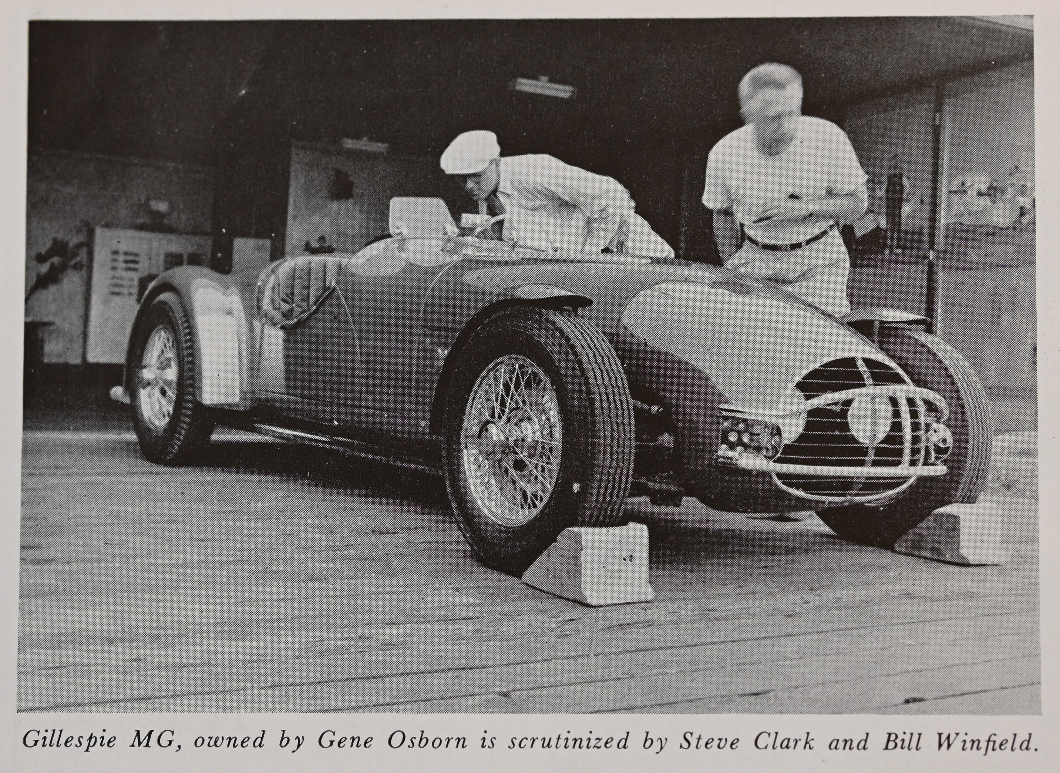 It appears that Jack Haggeman in California made two custom MGTDs: one for Bill David and the other for Bob Gillespie, hence the "David MG" and "Gillespie MG" that gets thrown around. It looks like Gillespie raced at Watkins Glen in September 1952, which was Gene Osborne's home race. I imagine that is where and when Gene picked it up. - John M.